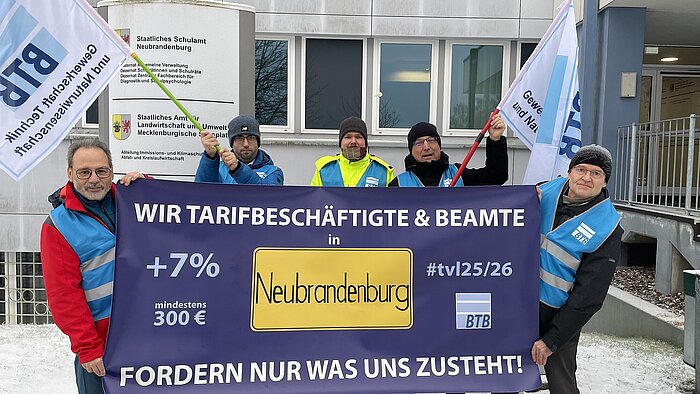 Mit einem bundesweiten Aktionstag hat die Gewerkschaft BTB am Montag ein deutliches Zeichen in der laufenden Tarifrunde der Länder (TV-L 2025/2026) gesetzt. Auch in Mecklenburg-Vorpommern beteiligten sich Tarifbeschäftigte mit Arbeitsniederlegungen, während Beamtinnen und Beamte demonstrierten.